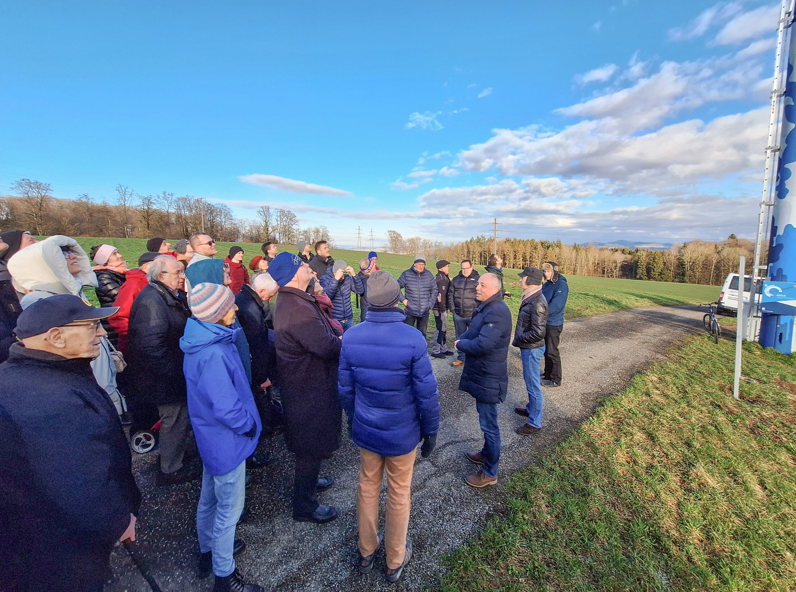 Anfangs März konnten sich die Aktionärinnen und Aktionäre ein eigenes Bild von der fertiggestellten Vertical Sky®-Testanlage in Brütten machen. Das Interesse an der Besichtigung der Anlage war gross, rund 60 Personen nahmen am Anlass teil.